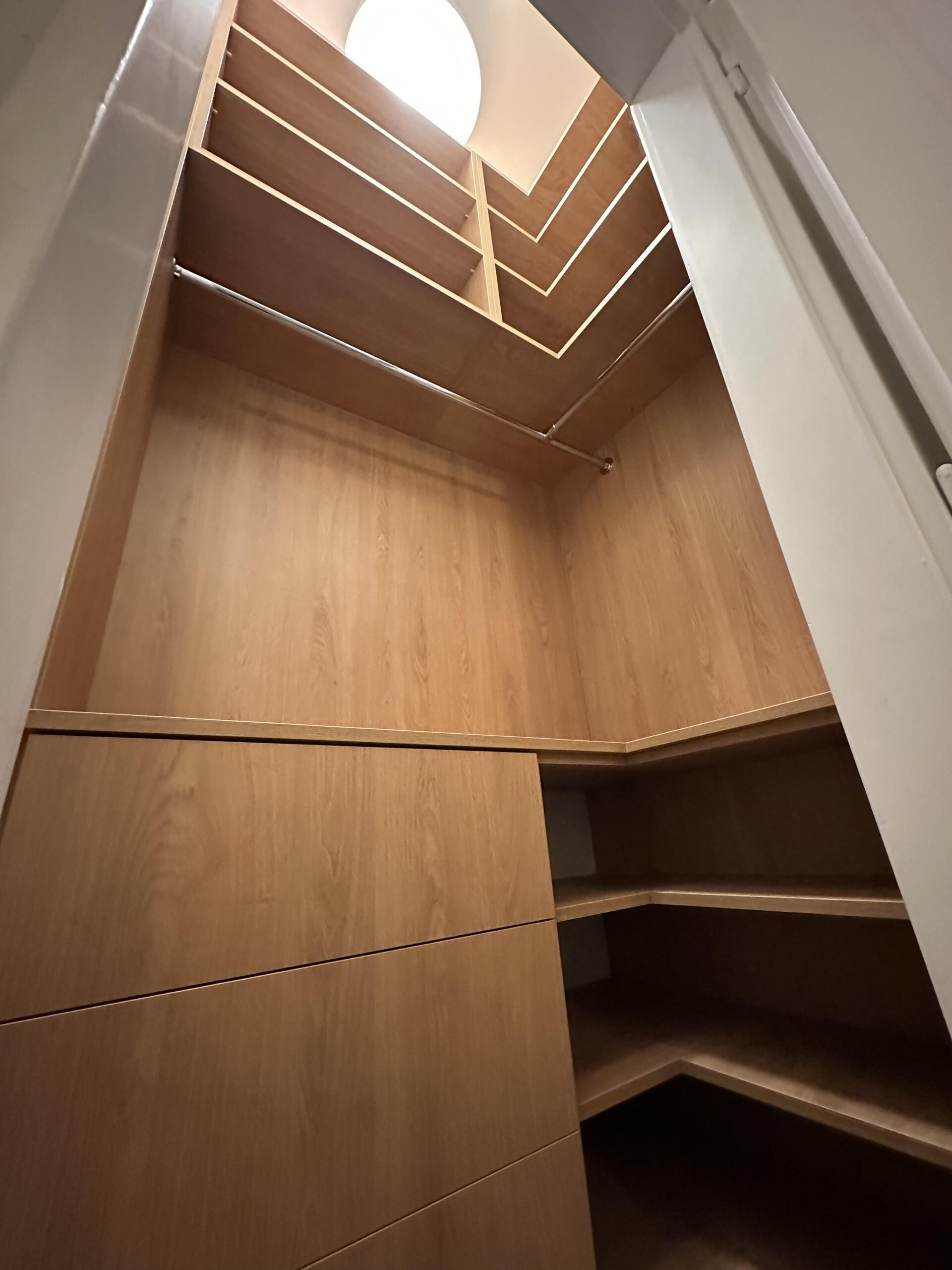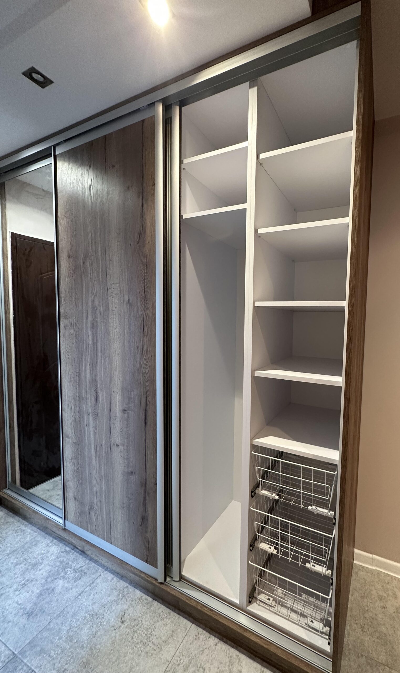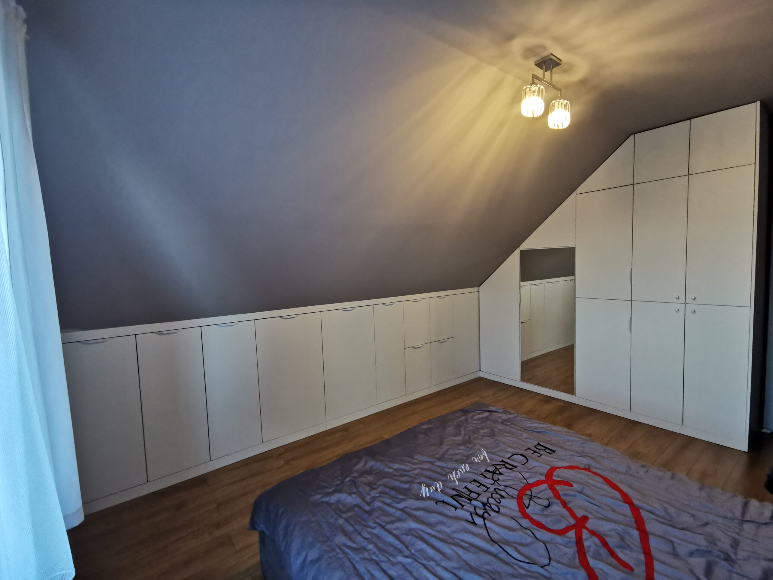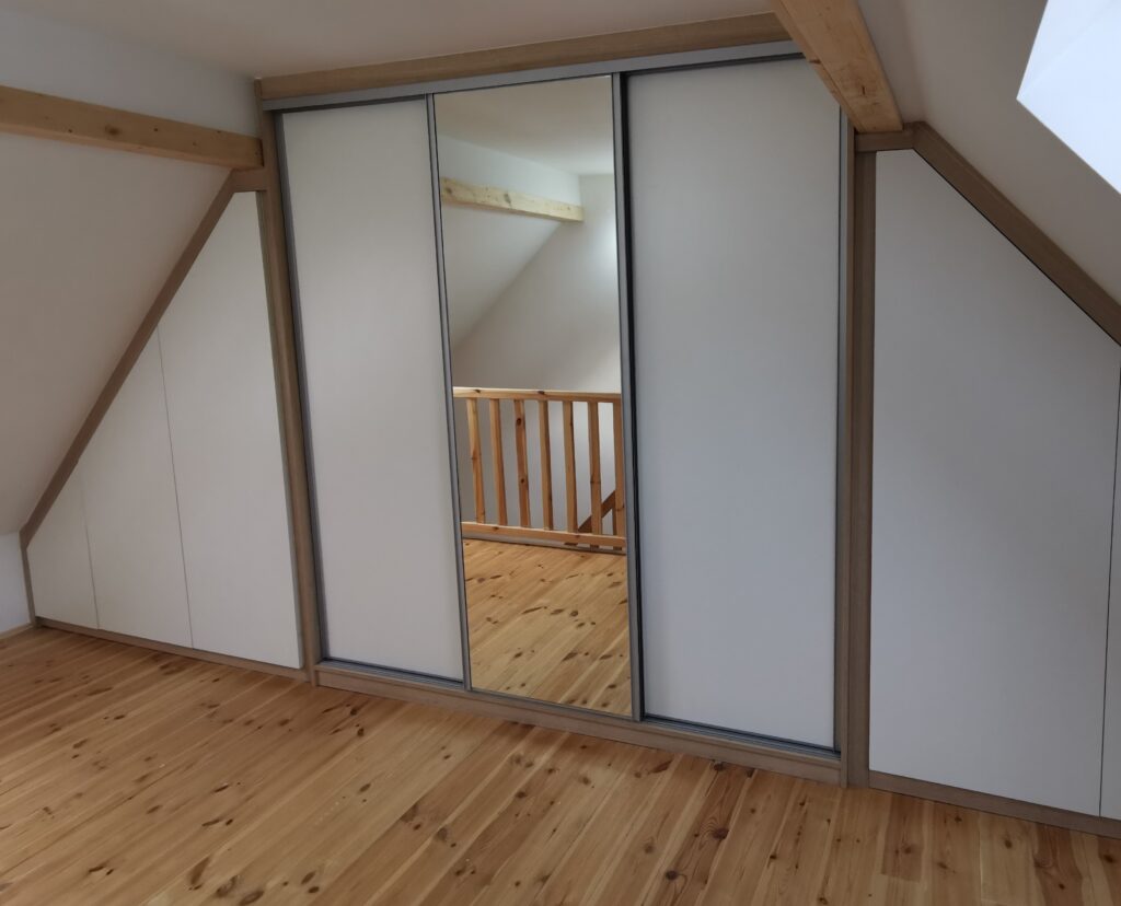 Tworzymy szafy wnękowe do zabudowy prostej, jak i również te bardziej skomplikowane, wykonując przy tym np. szafy wnękowe pod skos. Aranżujemy nietypowe przestrzenie takie jak m.in. miejsce pod schodami lub poddasze.